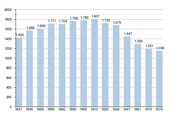- Sources : INS, Rem. : 1831 jusqu'en 1970 = recensements, 1976 = nombre d'habitants au 31 décembre.