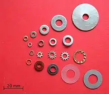 Ce sont les rondelles les plus simples et les plus courantes. Le diamètre extérieur dépend du diamètre intérieur et de la série (Z, M, L et LL). Il existe également une série épaisse et une normale. La tolérance sur l'épaisseur est également normalisée (série usinée U ou normale N). Il existe une grande quantité de matériaux (acier à ressort, inox…) et traitements de surface (nu, zingage, cadmiage…)