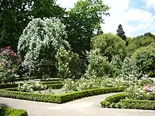 La roseraie abrite des roses botaniques et des variétés hybrides dans les carrés VII, VIII, IX et X[3] du jardin botanique. Sa floraison maximale a lieu au mois de mai, sauf pour le groupe des Banksiae dont les rosiers fleurissent fin mars-avril et pour le groupe des Carolinae dont les rosiers fleurissent début juin.