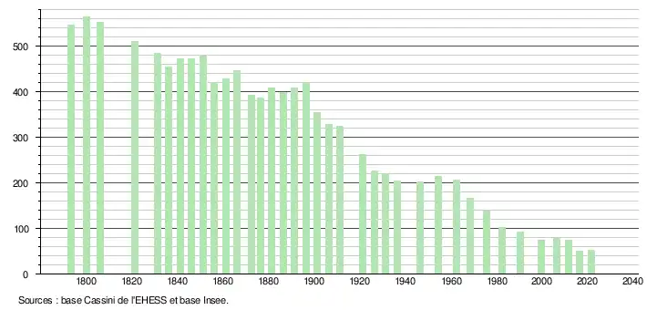 L'évolution du nombre d'habitants est connue à travers les recensements de la population effectués dans la commune depuis 1793. Pour les communes de moins de 10 000 habitants, une enquête de recensement portant sur toute la population est réalisée tous les cinq ans, les populations légales des années intermédiaires étant quant à elles estimées par interpolation ou extrapolation[18]. Pour la commune, le premier recensement exhaustif entrant dans le cadre du nouveau dispositif a été réalisé en 2006[19].
