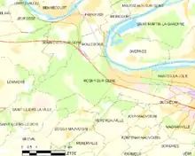 Elle est limitrophe de Mantes-la-Jolie et Buchelay à l'est, de Rolleboise au nord, de Bonnières-sur-Seine à l'ouest et de Saint-Illiers-la-Ville, Jouy-Mauvoisin et Perdreauville au sud. La ville de Guernes lui fait face sur l'autre rive de la Seine[2].