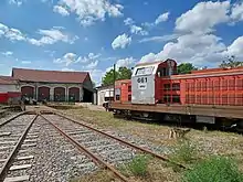 À droite est accolé un bâtiment aujourd'hui transformé en atelier. Les voies ferrées accédant à ce bâtiment sont encore en place. À gauche est l'ancien bâtiment des mécaniciens, transformé en bureaux. Il est construit en moellons enduits et pierre de taille pour le soubassement et les encadrements de baies. Le bâtiment en rez-de-chaussée est couvert de deux toits en bâtière. À l'arrière sont accolés plusieurs extensions aux bâtiments principaux, construites en parpaings et toit de tôle.