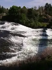 Les figures 6 et 7 montrent un phénomène de ressaut hydraulique en aval de chutes naturelle et artificielle. En particulier, la figure 7 montre un double ressaut hydraulique.
