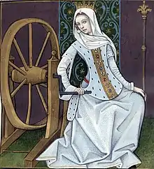 Fortune tournant sa roue dans un manuscrit des Échecs amoureux d'Évrard de Conty (XVe siècle).