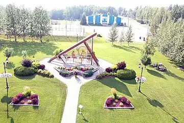 C'est le comité organisateur des fêtes du 50e anniversaire de la fondation de la municipalité en 1983 qui a fait ériger ce monument commémoratif, un rouet géant homologué dans le livre des records Guinness[2]. Florian Bégin est l'artisan qui a relevé le défi de fabriquer ce gigantesque rouet. Les plans avaient été dessinés par Jacques Chabot et il avait agrandi 4 fois à l’échelle les dimensions d’un vieux rouet patrimonial, provenant de Madame Claire Blanchette et légué à sa fille Francine Audet. Florian Bégin, le maître d’oeuvre de ce projet, a consacré plus de 700 heures à sa fabrication, aidé de messieurs Georges Audet, Ulric Chabot et Valère Pigeon. Ce grand rouet est fabriqué de pin blanc, pèse plus de 850 livres et est fonctionnel.