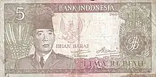 - (en) 5 rupiah - Irian Barat recto/verso, notice sur Banknote.ws.