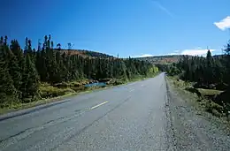 |   La route 108 traversant la frontière du centre du Nouveau-Brunswick, très isolée. | ||||||||