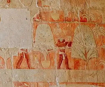 Dès l'Ancien Empire égyptien, des pharaons comme Sahourê (XXVe siècle) envoient des navires pour ramener des épices depuis le mystérieux « pays de Pount ». La plupart des auteurs l'interprètent comme la corne de l'Afrique, dans la région du cap Gardafui, ou plus rarement comme l'Arabie heureuse[29]. La plus célèbre de ces expéditions commerciales est certainement celle de la reine Hatchepsout (XVe siècle), dont le temple funéraire contient des bas-reliefs qui montrent les différentes richesses ramenées de Pount. Parmi celles-ci, on compte des arbres à encens déracinés et transportés vivants avec leurs feuilles et leurs racines dans des paniers ronds[30].
