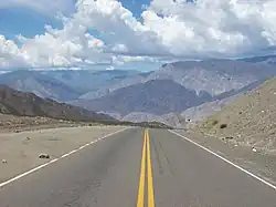 La route nationale 149 entre Calingasta et Barreal. Au fond, la cordillère d'Ansilta