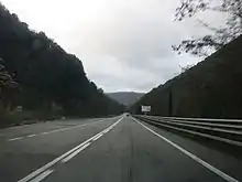 Les moindres possibilités de dépassements sont particulièrement pénalisantes du fait du grand nombre de poids-lourds[15] et du profil altimétrique de la route ; celle-ci se trouvant dans un territoire formé de collines et ne recourant à aucun tunnel, la pente maximale peut en effet atteindre 8 %[15].