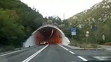 En juillet 2003 a été inauguré le tunnel bitube Colle Giardino, long de 4,5 km pour un coût de 71,4 millions d'euros[43], qui se rattache à la susdite déviation de Rieti et débouche à San Giovanni Reatino. ; ce projet remonte aux années 1990 et permet d'éviter l'ancien tracé (reclassé comme NSA 265) constitué d'une voie étroite et bordée d'arbres traversant le village de Maglianello Basso[44], qui faisait partie des deux cents sections les plus dangereuses du réseau routier italien[40].