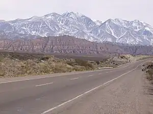 La Ruta Nacional 7 traverse la Province de Mendoza avec la Cordillère des Andes en arrière-plan.