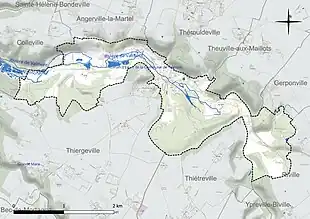 Les communes limitrophes sont Angerville-la-Martel, Colleville, Gerponville, Riville, Thérouldeville, Theuville-aux-Maillots, Thiergeville et Thiétreville.