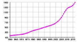 Un recensement officiel en 2010 fait état de 1,2 million d'habitants, dont 568 399 Bahreïniens et 666 172 non-nationaux. Les résultats d'un recensement équivalent en 2001 ne comptabilisaient que 650 604 habitants, dont 405 667 Bahreïniens et 244 937 non-nationaux, ce qui représente une augmentation de près de 90 % en une décennie[56]. Le pays passe la barre d'un million d'habitants en 2007[57]. La proportion d'expatriés s'est également inversée, passant de 38 à 54 %. Si la population locale est d'origine arabe, un grand nombre de non-nationaux sont originaires d'Asie du Sud (Philippines, Inde, Pakistan, Sri Lanka) ou d'Iran[58]. Les Indiens forment la plus grande communauté expatriée à Bahreïn, avec plus de 290 000 personnes en 2008[59],[60]. La plupart des non-nationaux ayant immigré à Bahreïn sont des hommes[58].