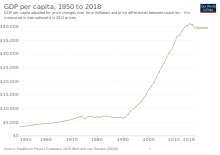 Selon le ministère des Finances de Bahreïn, le produit intérieur brut réel du royaume a diminué de 6,9 % par an au troisième trimestre de 2020. Cependant, au cours de la même période, l'économie a progressé de 1,4 % en rythme trimestriel[47]. L'économie bahreïnite avait été affectée par la pandémie de Covid-19, qui a poussé le gouvernement à approuver un plan financier de 4,3 milliards de dinars (11,4 milliards de dollars), alloué en priorité pour aider l'économie à faire face[48].