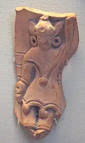 Il y existait aussi des influences grecques au début de l'histoire de Khotan, comme l'attestent les œuvres hellénistiques trouvées sur divers sites du bassin du Tarim, comme, par exemple la tapisserie Sampul, qui a été découverte dans le cimetière de Sampul (chinois traditionnel : 山普拉), un site qui se trouve à environ 14 km de Khotan dans le Xian de Lop[20], et qui provient probablement du royaume gréco-bactrien voisin[21]. Les archéologues ont également découvert des tapisseries représentant le dieu grec Hermès et un pégase ailé trouvées près de Loulan, ainsi que des céramiques qui peuvent suggérer des influences venant du royaume hellénistique de l’Égypte ptolémaïque[22],[23]. Il est donc possible que les premiers migrants arrivés dans la région aient été un groupe ethniquement mixte originaire de la ville de Taxila dirigé par un chef gréco-saka ou indo-grec, groupe qui aurait fondé Khotan en reproduisant les structures administratives et sociales du Royaume gréco-bactrien[24],[25]. Cette hypothèse est confortée par les résultats de l'analyse de l'ADN mitochondrial des restes humains du cimetière de Sampul, où les habitants de la région ont enterré leurs morts d'environ à 283[26]. Ces tests ont révélé des affinités génétiques avec des peuples du Caucase, en particulier une lignée maternelle liée aux Ossètes et aux Iraniens et une lignée paternelle est-méditerranéenne[20],[27].