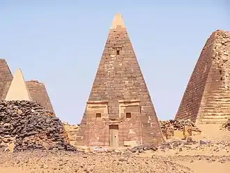 Nécropole de pyramides royales à Méroé. Bien qu'on assiste au IIIe siècle à un bref retour de la nécropole royale à Napata, qui doit correspondre à une reprise d'influence de la région du nord du Soudan par le royaume de Koush (probablement au moment où les lagides perdent leur suzeraineté sur la Haute-Égypte), celle-ci est en fait officiellement à Méroé.