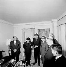 Entretemps, Sihanouk, fortement choqué et effrayé par l'assassinat de Ngô Đình Diệm en novembre 1963, craint de subir le même sort. Il annonce la suspension de l’aide militaire et économique en provenance des États-Unis, qu'il accuse de soutenir les activités subversives des Khmers Serei en Thaïlande et au Vietnam du Sud, et affirme que le Cambodge ne rejoindra jamais le front anticommuniste que les Américains veulent constituer en Asie du Sud-Est. Dans les semaines qui suivent, il se réjouit publiquement de la mort de John Fitzgerald Kennedy et du premier ministre thaïlandais Sarit Thanarat, déclarant « Les dieux punissent tous les ennemis du Cambodge pacifique et neutre ». Les relations diplomatiques avec les États-Unis sont rompues en 1965[34] alors que les violations de l'espace aérien par l'aviation américaine s’intensifient et que les combats au sol entre l'Armée de la république du Viêt Nam (ARVN) et les troupes du Việt Cộng insurgés débordent largement sur les terres du prince[23].