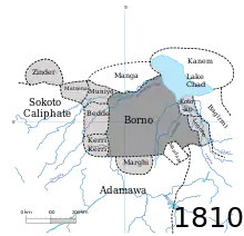 À la fin du XIXe siècle, la région est ravagée par le négrier soudanais Rabah du vieux sultanat de Sennar qui s'impose en 1893 à Hachim ibn Omar (1885-1893) comme sultan du royaume. La capitale, Kukawa, est détruite[4].