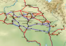 La mise en place de l'administration provinciale s'accompagne également du développement d'un système routier reliant les principaux centres provinciaux, avec des relais situés tous les trente kilomètres environ, dotés de quoi approvisionner les messagers de manière à permettre une transmission des messages la plus rapide possible[124],[129].