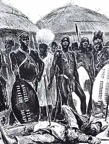 Chaka est tué en 1828 par ses deux demi-frères, Dingane et Mhlangana. Après l'assassinat, Dingane tua Mhlangana et s'empare du trône. L'une de ses premières mesures est d'exécuter l'ensemble de la famille royale. La seule exception est un autre demi-frère, Mpande qu'il considère trop faible pour être une menace. Durant plusieurs années, il condamne à mort la plupart des anciens partisans de Chaka dans le but d'assurer sa suprématie. Dingane organise l'exécution de Piet Retief et de nombreux trekboers en 1838. Il est à son tour assassiné en 1840 par Zulu Nyawo, Sambane et Nondawana près d'Ingwavuma (en).