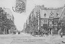 - En 1882, une fois la renommée et la fortune acquises, le peintre Alphonse de Neuville (1836-1885) fait appel à un architecte renommé, Gustave Gerhardt, prix de Rome 1865, pour se faire construire un bel hôtel particulier qui sera à la fois une résidence et un atelier[9], à l'angle de la rue Brémontier et du boulevard Pereire (25, rue Alphonse-de-Neuville aujourd'hui).