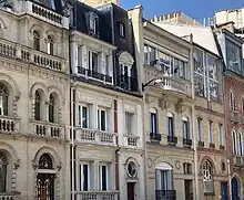 - No 18[42] : immeuble de rapport avec façade Belle Époque construit en 1908 par l'architecte Ernest Louis Lahir. Autres réalisations de E. Lahir : hôtel de Villeroy au 33, rue Jean-Goujon (Paris VIIe) et remaniement du château de Fleury en Bière (91) vers 1910.
