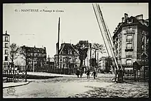 - Gare de Nanterre-Ville[5]. Dans les années 1970, la création de la ligne A du RER entraîna l'enfouissement des lignes ferroviaires, permettant la suppression du passage à niveau. Le passage souterrain destiné aux piétons fut toutefois conservé.