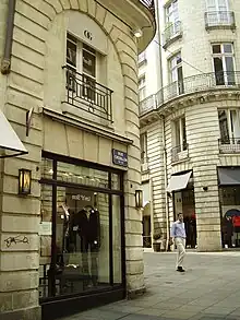 L'entrée du passage Pommeraye et la rue du Puits d'Argent vues depuis la rue Crébillon.