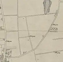 Sur le même plan, le cimetière apparaît peu d'années après sa création, et n'y a pas encore subi ses agrandissements successifs.
