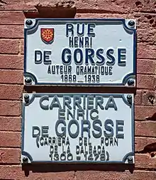 - Pierre Salies, « Gorsse (rue Henry de) », Dictionnaire des rues de Toulouse, vol. 1, A-H, éd. Milan, Toulouse, 1989, p. 534 (ISBN 978-2-8672-6354-5).