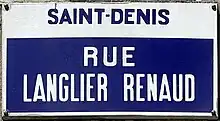 Par arrêté préfectoral, en date du , la rue Langlier-Renaud est classée au nombre des voies publiques urbaines de la ville de Saint-Denis[6].