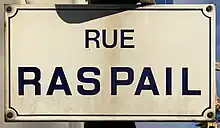 Cette voie porta le nom de rue des Champs-Blancs jusqu'à la place Émile-Guénet, puis rue du Colombier au-delà[1], est nommée en hommage à François-Vincent Raspail, chimiste, botaniste et homme politique français. Ce nom lui a été attribué par délibération du Conseil Municipal en date du 6 février 1879[2].