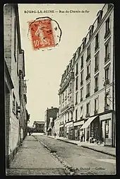 Jusqu'au XVIIIe siècle, un sentier traversait le lieu-dit Derrière le Luxembourg qui n'était pas bâti. L'arrivée du chemin de fer en 1845 bouleverse cet endroit en créant le quartier de la gare, le qui se construit peu à peu[4]. Le sentier devient la rue de l'Embarcadère, puis la rue de la Gare, et enfin la rue du Chemin-de-Fer[5],[6],[7], jusqu'à la Libération.