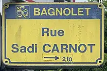 Depuis 1894, par décision du conseil municipal, elle est nommée ainsi en hommage à Sadi Carnot, homme politique français[1], assassiné.