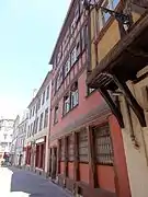 - Formant l'angle avec la Grand-Rue, cette ancienne maison de boulanger Zur Rosen (« À la Rose ») est caractéristique de la construction médiévale, avec ses encorbellements sur deux côtés, soutenus par des aisseliers, et sa structure à pans de bois. Le rez-de-chaussée a été remanié en 1549, il en subsiste l'enseigne avec la date et une rose. Des fenêtres à crossettes ont été ajoutées au début du XVIIIe siècle[14].