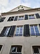 - Reconstruite au XVIIIe siècle[1] à l'angle de la rue des Hannetons, la maison a été habitée en 1789 par le pasteur Jean-Georges Stuber, puis en 1795 par l'écrivain autrichien Johann Rautenstrauch, auteur d'un poème à la gloire de Strasbourg, Das beglückte Straßburg[10].