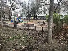 - En face du 91 : la Place-Cardinal-Jean-Villot, occupée par une aire de jeux.