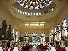 Un grand escalier mène au grand hall. De part et d'autre, il donne accès à deux vestibules latéraux, éclairés de hautes fenêtres, et aux pavillons en avant-corps. L'un abrite les salles d'exposition, l'autre l'administration. Dans l'axe du hall, un corridor mène à la salle de lecture. Elle est éclairée par une coupole en pavé de verre. Le mobilier d'origine, composé de grandes tables de lecture et d'étagères en bois, réalisé par l'ébéniste Alet, a été remplacé par un mobilier contemporain en 2003.