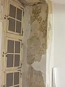 - La construction se trouve sur l'emplacement de la chapelle Saint-Jacques (St Jacobskapelle), présente de 1190 au XVIe siècle[2]. Des travaux de réhabilitation dans cette zone ont permis aux archéologues d'identifier un immeuble des environs de 1300, comportant notamment une grande salle de 150 m2 au rez-de-chaussée, avec six fenêtres à coussièges et un plafond à poutres apparentes du début du XIVe siècle. Sur des peintures murales superposées des XIVe et XVIe siècle figurent des personnages tenant des instruments de musique, rarement représentés à cette échelle au Moyen Âge. Ces découvertes exceptionnelles ont permis à l'édifice de faire l'objet, en totalité, d'un classement au titre des monuments historiques en 1998[33].
