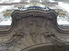 - Cet édifice du XVIIIe siècle se distingue par son balcon central dont la forme galbée de la tablette révèle une influence de la rocaille, alors que le dessin de la grille est plutôt de style Régence, à la manière de celles des balcons du Palais Rohan[7].