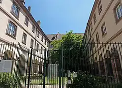 - L'ancien hôtel de Gallahan — du nom de son maître d'ouvrage, le baron Louis Denis de Gallahan, conseiller et grand veneur du margrave de Bade[7] — est construit en 1767-1768 par le maître-maçon Laurent Goetz, dans un style Régence avec une touche de rococo, comme en témoignent des consoles rocailles plaquées sur la façade, côté rue des Récollets[2],[1].