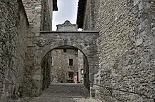 Vue de la Porte d'En-Haut qui constitue l'accès à la cité médiévale situé au nord-ouest. Vue de la Porte d'En-Haut qui constitue l'accès à la cité médiévale situé au nord-ouest.