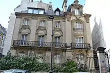 - No 5 : en 1900, avant la construction de l’actuel bâtiment, on trouve à cette adresse un hôtel qualifié de « princier » dans une petite annonce, « très artistiquement meublé », comprenant « 7 chambres à coucher, 4 salons, etc, avec tout le confort moderne, téléphone, électricité, etc », à louer à raison de 5000 francs par mois[2]. En 1911, un hôtel particulier est construit à cet emplacement par l'architecte Charles Adda pour Lucien Kahn[3] ; c'est aujourd'hui la résidence de l'ambassadeur du Pakistan.