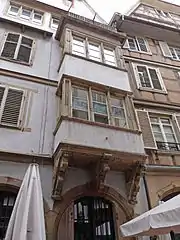 - no 4 : La maison Zur alten Münss (« à l'ancienne monnaie ») a pu être datée de 1442 par dendrochronologie, mais plusieurs vestiges, tels que la porte en arc brisé gothique ou les baies Renaissance, suggèrent une construction antérieure[9]. En particulier, l'arc en accolade de la fenêtre du rez-de-chaussée permet de dater l'infrastructure de l'édifice du XVe siècle[3]. L'emplacement lui-même est évoqué dès 1283 sous le nom Zu der alten Münssen[2].