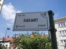 En 1917, la ruelle changea de nom pour éliminer des doublons en Région bruxelloise. Elle s’appellerait désormais rue du Railway – Spoorbaanstraat. La traduction a entretemps disparu au profit du nom unique anglais.