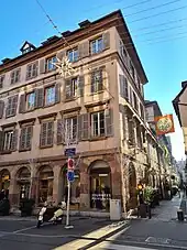 - À l'angle avec le no 2 de la rue du Sanglier, l'édifice conserve quelques éléments datant du Moyen Âge[2]. Un restaurant, Zum goldenen Lamm, y est mentionné en 1686[7].