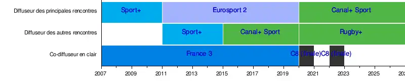 | France Télévisions et Eurosport | 2006-2010 | France Télévisions et Eurosport se partagent la diffusion de la Challenge Cup pour les saisons 2006-2007 à 2009-2010[22]. |