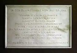 En , l'ancien ministre de l'Intérieur et écrivain Eduard von Schenk dépose à Louis, qui a été couronné entretemps, une liste des Bavarois les plus illustres, qui complète celle déjà réalisé par Hofmayr[3].