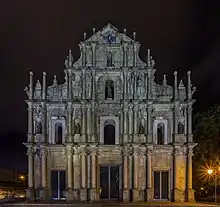 Les ruines de Saint-Paul sont un ensemble architectural de Macao, constitué de l’église de la Mère-de-Dieu de Macao et des fondations du collège Saint-Paul. Construits à la fin du XVIe (collège) et début du XVIIe siècle (église), collège et église sont ravagés par un incendie en 1835. Ne reste debout que la façade de l’église au haut d’un escalier monumental de 68 marches. Image emblématique de Macao, et devenu sa plus grande attraction touristique, ce site fut classé en 2005 au Patrimoine mondial de l'humanité (UNESCO) avec tout le centre historique de Macao.
